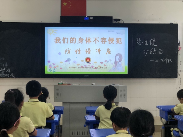 活動中,一至三年級各班通過播放預防性侵害視頻,直觀介紹了什么是身體的隱私部位,并明確告訴學生,隱私部位是不能隨便讓他人觸碰的。四至六年級結合社會熱點事件,開展講授、討論、案例分析等靈活多樣的課堂教學,講解什么是性侵、性侵的主要形式以及對性侵害的認識誤區,如何防范和應對性侵行為,提高學生的自護意識和自救能力。引導學生掌握青春期男女生正確交往的方式,樹立正確的人生態度,自覺抵制性侵害,大大增強學生的自我保護意識。