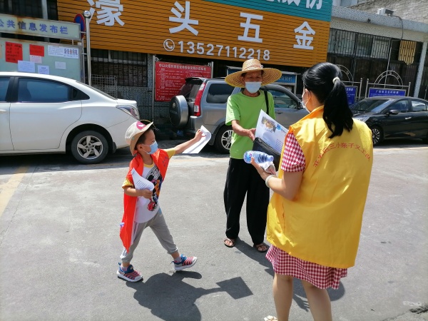 7月11號上午,該校黨員志愿者服務隊、親子義工服務隊一行,在唐秉晶校長的帶領下,在周邊街道派發“全國文明城市倡議書”宣傳單頁。志愿者們頂著烈日,揮灑汗水,發揚了一不怕苦,二不怕累的精神,認真詳細地講解宣傳內容,把文明和公益的精神傳遞給更多的市民。