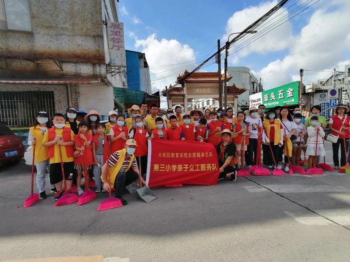 據悉,自7月份以來,開發區第三小學開展了多次志愿者活動。不管是深入村巷逐家逐戶進行派發宣傳資料,還是清理輕軌中山站前衛生死角,志愿者都踴躍報名,積極參與,入社區,接地氣,傳遞社會正能量,開發區第三小學全體師生以實際行動,為積極響應市創建文明城市活動增光添彩。