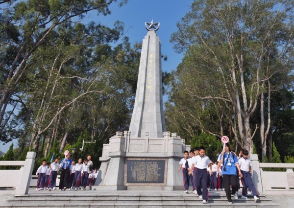 為進(jìn)一步傳承紅色基因,加強(qiáng)學(xué)生的愛(ài)國(guó)主義教育,培養(yǎng)學(xué)生的家國(guó)情懷,落實(shí)立德樹(shù)人這一根本任務(wù),研學(xué)第一站安排了“緬懷革命英烈,傳承英烈精神”為主題的祭掃活動(dòng)。同學(xué)們來(lái)到了中山市革命烈士陵園,身著整齊的校服,在英雄紀(jì)念碑前舉行了隆重而莊嚴(yán)的掃墓儀式。儀式由梁小玲副校長(zhǎng)主持。首先,少先隊(duì)員代表向烈士敬獻(xiàn)花圈;接著學(xué)生代表在紀(jì)念碑前發(fā)言,號(hào)召大家要不忘先輩建國(guó)功勛,繼承愛(ài)國(guó)傳統(tǒng),要愛(ài)自己,更要愛(ài)祖國(guó),要發(fā)奮學(xué)習(xí),為她增光添彩!隨后在少先隊(duì)大隊(duì)輔導(dǎo)員的帶領(lǐng)下,全體同學(xué)右手握緊拳頭,大聲在紀(jì)念碑前莊嚴(yán)宣誓;而后,全體老師及同學(xué)在紀(jì)念碑前默哀一分鐘,表達(dá)對(duì)烈士的崇高敬意。