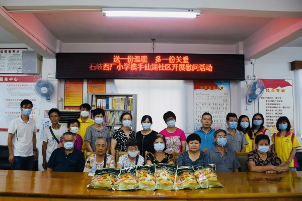 學校送溫暖,真情暖心田。2020年7月8日上午,石岐西廠小學攜手仙湖社區在該社區活動中心開展了慰問活動,為仙湖社區的貧困家庭送上牛奶、燕麥片等慰問品,也送去學校的溫暖關懷及美好祝福。