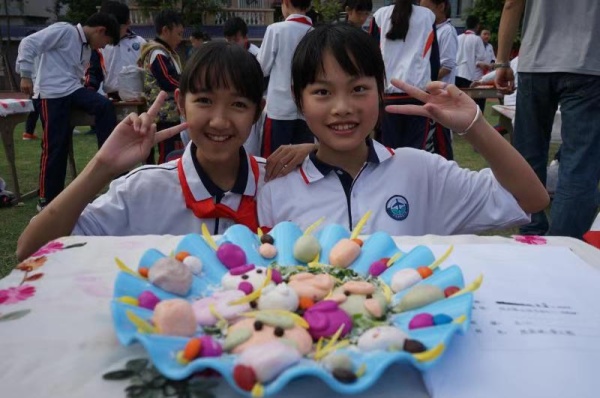 學校鼓勵同學們積極參與,凡報名即可參加,五百多位同學報名參加了本次活動,桌子在足球場擺放整齊,校園沸騰了。參加本次活動的同學提前備好了糯米面團和各種口味的湯圓餡,隨著老師“比賽開始”的口令,參賽同學認真的忙活起來了。雖是第一次參加這類比賽,但同學們卻別出心裁精心配色搓出了許多色彩繽紛、形狀各異的湯圓。看,有熊貓湯圓、小豬湯圓、南瓜湯圓、橘子湯圓……;經過30分鐘的角逐終于到了關鍵時刻,同學們發揮想象將類主題運用于擺盤上:《流浪地球》、《五谷豐登》、《小豬一家親》、《流星花園》、《如魚得水》、《辣椒醬湯圓》等等紛紛登場讓人目不暇接。看著自己的作品,大家臉上洋溢著興奮與自豪的笑容。