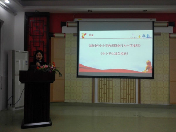 之后,黃麗儀校長帶領大家學習了《新時代中小學教師職業行為十項準則》和《中小學生減負措施》兩份文件。黃校長要求教師們深入學習有關學生減負的文件精神,嚴格按照上級文件要求,切實做好學生減負工作,此次學習的具體減負措施有四個方面:規范學校辦學行為;嚴格校外培訓機構管理;家庭履行教育監護責任;強化政府管理監督。