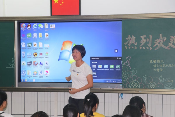 家長會最后的議程,是各班的科任老師與家長溝通交流。老師們把握機會,會前做了充分準備。看!各班喜慶的板報、精美實用的課件、耐心的講解、家長專心聆聽,構成了一幅和諧的圖畫。