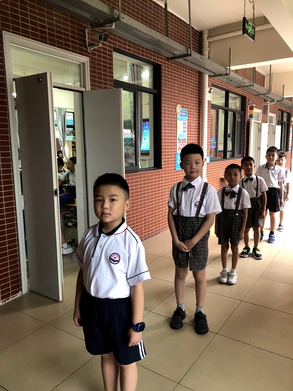 在黃榮勝校長、蘇鳳群副校長的正確帶領下,全體行政、一至三年級所有教師、家長護校隊等通力配合,為學生平安返校保駕護航。每位學生在值日行政與教師的指引下保持一米距離,進行體溫檢測,嚴格把好入學第一道關,保證每位學生健康進校園。