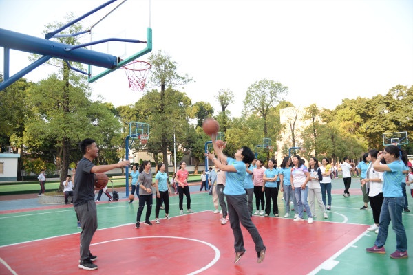 第一個項目是定點投籃比賽,每個級組派出5人參賽,每人投籃5個。一聲令下,只見老師們個個摩拳擦掌,全神貫注,奮勇一躍,在經過幾次嘗試之后,老師們的命中率也越來越高,在投中的瞬間,全場總是掌聲雷鳴,令人振奮。第二個項目是乒乓球比賽,每個年級組派出5名代表分別參加單打和雙打,比賽過程高潮迭起,選手們一個個精彩的防守和絕殺都引起觀眾們的陣陣喝彩。最后根據總得分分別評出表現優秀級組,并頒發獎狀。活動第三項,工會成員給全校老師頒發活動紀念品。沐浴著陽光,大家帶著最燦爛的笑臉留下了最美的大合照。
