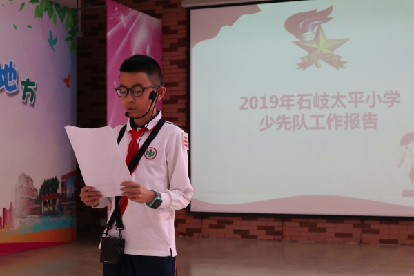 活動在響亮的隊歌聲中拉開序幕,大隊長顧朗作為少先隊員代表作了《少先隊中山市石岐太平小學大隊委員會2019年度工作報告》。緊接著,學校大隊輔導員余鳳華老師宣讀了《少先隊中山市石岐太平小學2019年代表大會選舉辦法(草案)》,并在現場進行表決,充分發揮了少先隊員代表們的選舉權。