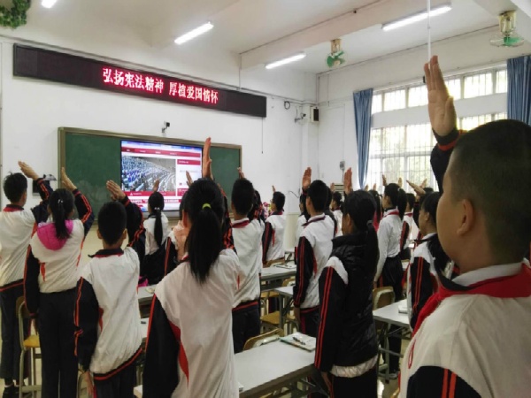 據(jù)了解,學校為師生們營造了一個濃厚的憲法學習氛圍,在宣傳欄海報上、電子屏幕上處處刊播著憲法宣傳標語,孩子們利用課間不時駐足學習;課后,全校每個學生還同家長一起,進行了“學憲法講憲法”網(wǎng)上學習和“憲法小衛(wèi)士”活動,實現(xiàn)了學習教育活動的廣參與、全覆蓋、實效性。