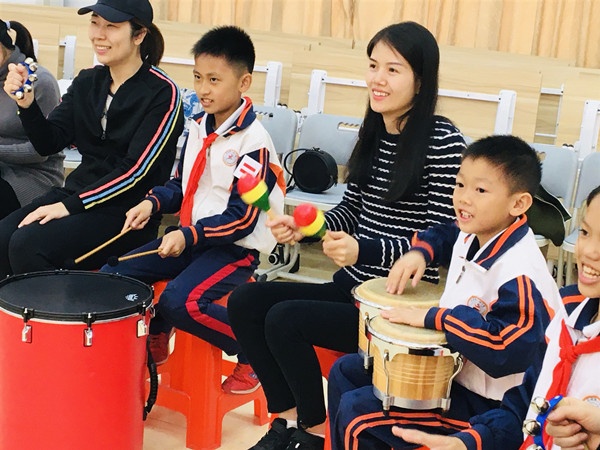 活動中,學生和家長們積極參與,每個人臉上都洋溢著幸福的笑容。鼓圈音樂治療治療環節中,在老師的指引下,孩子和家長們圍成一個大圓圈坐在一起,一邊搖動著手里的鈴鐺,一邊隨著悠揚的樂曲輕聲歡唱。隨后,現場安排了三名專家對學生的心理進行輔導和評估,讓有心理困惑的家長、學生在現場就能得到專業的心理解答,并且通過科學的兒童青少年相關的心理量表,讓家長了解孩子自身的心理、行為及情緒狀況。為了增長親子間的互動協作能力,工作人員還組織親子之間開展了情系千千結、坐地而起等團體小游戲;游戲中,家長和孩子們們互動和諧,一陣陣掌聲和歡笑聲在會場中此起彼伏。接著,家長和孩子們在心理援助熱線體驗活動中,了解中山市心理援助熱線的服務內容及性質。最后,現場的心理健康教育VR體驗直通車服務,讓同學們體驗心理治療的同時,感受國家科技發展的魅力。