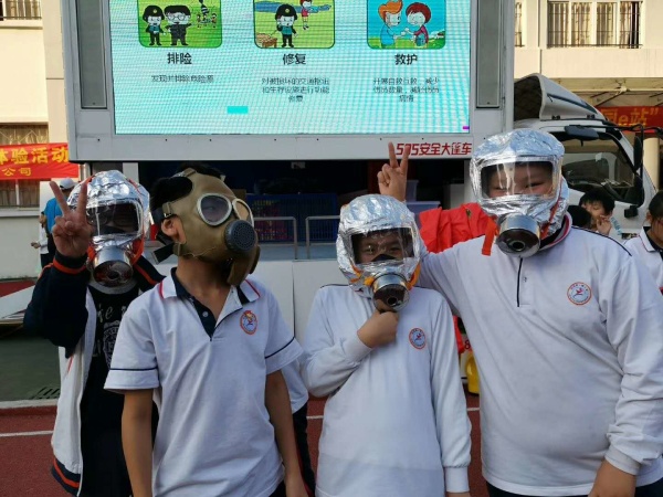 “595安全大篷車”是以特殊改裝的貨車為載體,集舞臺、LED高清顯示屏、燈光音響、互動平臺、體驗?zāi)K、運輸、智能軟件等為一體的“移動式”科普館。廣東伍玖伍安全文化科技有限公司的宣講老師以“595安全大篷車”為載體,通過四維一體(講解+互動+實操+演示)的教學(xué)模式,現(xiàn)場開展消防、人防安全宣傳教育,讓同學(xué)們通過聆聽安全知識講座、安全知識互動問答、應(yīng)急用品使用方法演示、自救自護項目模擬體驗等方式,直觀、系統(tǒng)、全面的學(xué)習(xí)安全知識和防護技能。