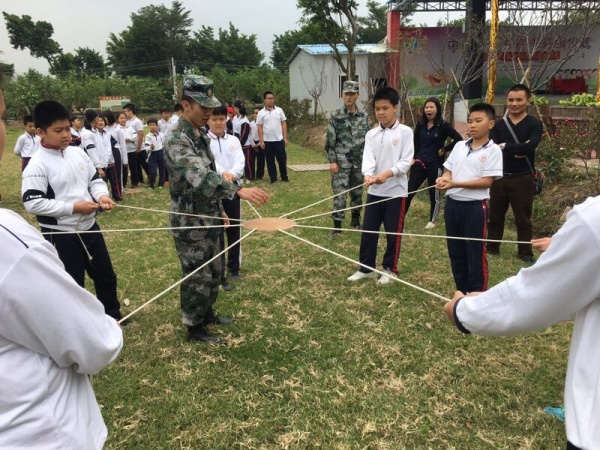 經過半個多小時的車程,10輛載著同學們的大巴陸陸續續地到達了目的地——民眾水鄉四季。車一停穩,同學們就興奮地走下車,排著隊伍有序地進入了水鄉四季。進入農莊后,孩子們都眼前一亮,這里不僅有寬闊的拓展訓練基地,還有草木園、番石榴園、魚塘、機動游樂園等項目。伴著拂面的秋風和溫暖的陽光,同學們上午在教官的帶領下參加拓展訓練,有大大木腳板男女比賽走,集體男女傳球;小組拋球賽,大家跑著、跳著,盡情享受大自然的美麗風光。同學們參觀水鄉農具博物館,面對各式各樣的農具和果實模具,大家興致勃勃,討論不休。欣賞草木園的花草,同學們陶醉于它們絢爛的色彩。紛紛發出贊嘆:”啊,真美!”