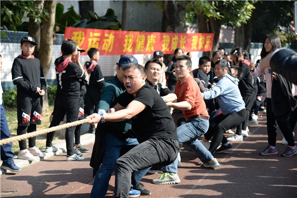 開幕式結束后進行了豐富多彩的親子項目比賽,分別是:龜兔賽跑、履帶戰車和踏石過河。在比賽中,孩子和家長積極配合,一起奮勇爭先,努力拼搏,加油聲、吶喊聲、歡呼聲沸騰了整個運動場。