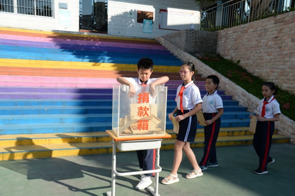 9月23日上午,石岐張溪鄭二小學的全體師生齊聚小操場,首先由五1班的同學代表進行國旗學的講話《愛護地球,就是愛護我們人類自己》,接著舉行“2019年石岐區東西部扶貧”捐款儀式,在戴織校長的帶領下,全體行政、老師及各班學生代表手里都捧著一份沉甸甸的愛心走向捐款箱。贈人玫瑰,手留余香。學校全體師生以點滴之愛滋潤一批批困難家庭和需要幫助的人的心靈。最后全校師生一起合唱《我和我的祖國》,在嘹亮的歌聲當中結束了今天的活動。
