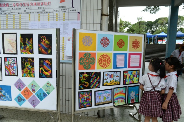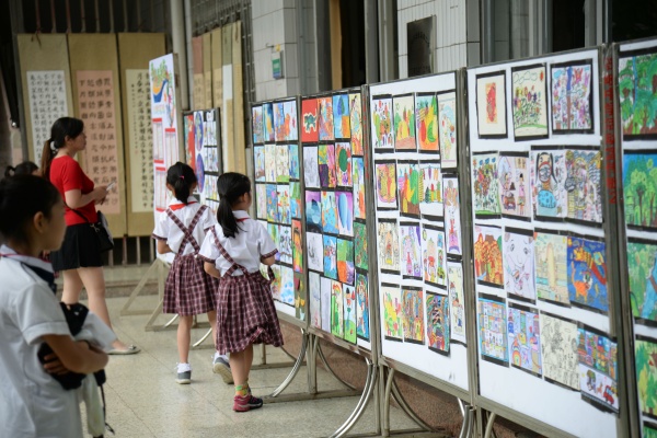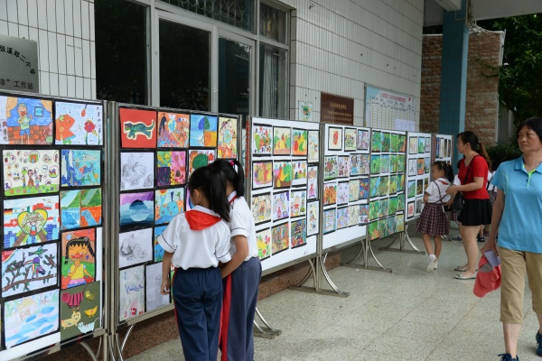 本次書畫展,由美術(shù)科組精心策劃和布置,展示了師生良好的藝術(shù)素養(yǎng)和積極向上的精神風(fēng)貌。展覽作品涵蓋水粉、彩鉛、兒童畫、手工畫、書法等不同類型作品,每幅作品都真切地體現(xiàn)師生對美的追求、對藝術(shù)的探索和對美好生活的向往。書法蘊(yùn)含著中國傳統(tǒng)文化的精髓,承載著中國文化的審美志趣。書畫展上,展示了戴織、古運(yùn)迎、陳月英、何雪芳、李桂華、劉燕青、肖湘霞、胡竹軍等部分教師的優(yōu)秀書畫作品。書畫習(xí)作活動(dòng)的開展,為教師們展現(xiàn)才藝、相互學(xué)習(xí)、共同成長提供了良好的平臺,有效地促進(jìn)了教師對教學(xué)的思考。其次,展出的學(xué)生作品都來自平時(shí)的美術(shù)課堂和社團(tuán)成果,不同的年齡段學(xué)生藝術(shù)表現(xiàn)手法也不同。學(xué)生作品展板上,一件件風(fēng)格迥異的作品皆反映出學(xué)生內(nèi)心奇異世界。孩子們是在用心靈作畫,以獨(dú)特的視角再現(xiàn)美好生活;用情感寫意,以純真的熱情展現(xiàn)個(gè)人風(fēng)采。