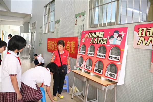 精彩的講座完畢,同學們來到會場外面,展開了回答問題贏取獎品的法治小游戲。同學們熱情高漲,爭先恐后,有序排隊答題。“打擊犯罪人人有責”“反邪教大作戰”“法治大轉輪”“法律猜猜猜”,在這些游戲中,同學們認識了許多法治知識,在快樂中學習。經過刺激的游戲,同學們不僅收獲了知識,還收獲了豐厚的獎勵。