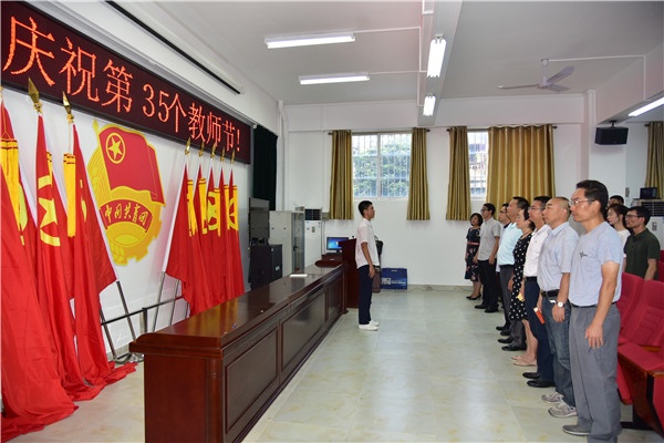 9月9日上午,啟發(fā)中學(xué)開(kāi)展了慶祝第35個(gè)教師節(jié)活動(dòng)。全校老師齊聚學(xué)校明禮堂,共同慶祝教師節(jié),慶祝活動(dòng)在莊嚴(yán)肅穆的國(guó)歌聲中拉開(kāi)了序幕,先由學(xué)生代表發(fā)表感念師恩演講,接著由雙人詩(shī)朗誦歌頌老師。