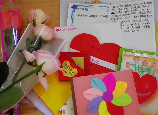 教師節(jié)當(dāng)天,學(xué)校團(tuán)委、家委會(huì)為老師們準(zhǔn)備了精美的賀卡,老師們一上班就收到了滿滿的祝福。
