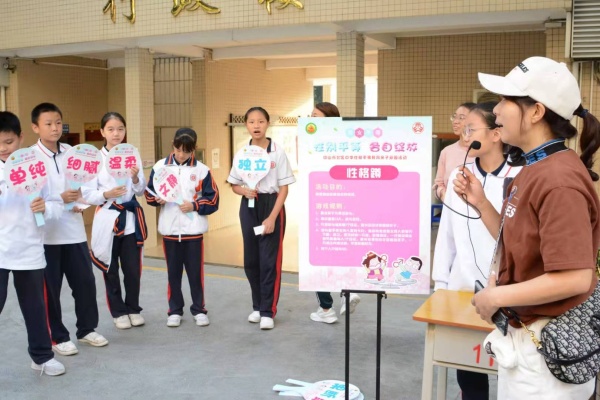 初一級部分班級的300多位學生和部分家長參與了游園活動。活動開始,初一級級組長劉瑞翔老師組織大家學習游園活動中的紀律要求。接著,本次活動策劃者英格老師跟大家解讀本次活動的主題——性別平等、各自綻放。英格老師指出男女性別平等作為國家一項基本國策,內涵非常豐富,舉行本次活動目的在于向參與者傳遞“性別平等,不受社會文化給予的限制,懂得了解自己,成為遵從內心的、充滿活力的、生命力綻放的自己”的信息。