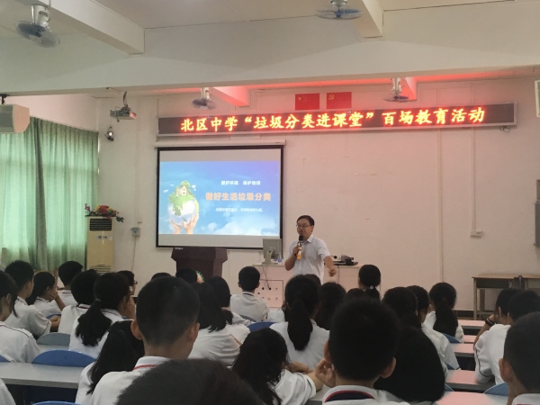 為了提高中學(xué)生生活垃圾分類(lèi)和環(huán)境保護(hù)意識(shí),倡導(dǎo)“垃圾分類(lèi),從小做起”的教育理念,5月29日下午,中山市城市生活垃圾分類(lèi)收集實(shí)施小組來(lái)到了中山市北區(qū)中學(xué),在完美報(bào)告廳里,電子科技大學(xué)中山學(xué)院張景強(qiáng)老師做了“愛(ài)護(hù)環(huán)境,保護(hù)地球”生活垃圾分類(lèi)的講座,北區(qū)中學(xué)初一級(jí)的全體師生參加了這次活動(dòng)。