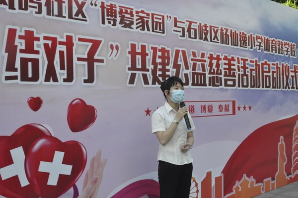 接著體育路學校家長代表吳淑玲女士作了熱情洋溢地發言,她表示對學校與鳳鳴社區“結對子”共建公益慈善活動表示十分支持和認同,認為此項活動對孩子們來說不僅是一項公益慈善活動,更是一次非常難得的社會實踐,能夠幫助別人、服務社會,非常有意義!她倡議更多的家長身體力行地帶領孩子一起參與“結對子”慈善活動,同時祝愿此次活動讓孩子們都能學有所思、學有所長!