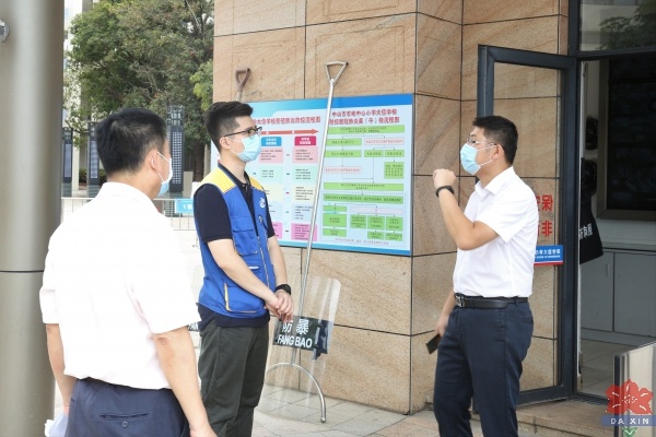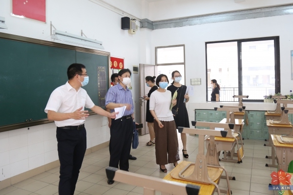 大信學(xué)校全體行政和級(jí)組長(zhǎng)分組陪同專(zhuān)班小組成員到各個(gè)場(chǎng)地進(jìn)行考察,并詳細(xì)匯報(bào)了學(xué)校學(xué)生返校疫情防控工作的具體措施和后勤保障工作,專(zhuān)班小組開(kāi)展了認(rèn)真細(xì)致地檢查驗(yàn)收工作,并對(duì)一些管理細(xì)節(jié)進(jìn)行了現(xiàn)場(chǎng)指導(dǎo)。