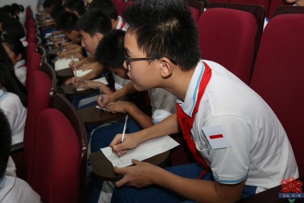 在整個視頻學習過程中,大信學校報告廳內學習氣氛濃厚,師生聽講認真,仔細記錄了知識要點和感興趣的問題。視頻結束后,孫慧濤主任抓住學生學習興致高昂,交流意愿強烈的教育契機,及時組織學生們就學習內容、感想及收獲充分展開討論與交流,并在最后梳理了本次全市班會課活動的的知識要點,鼓勵了學生學法守法的熱情,鼓舞了學生面對不法侵害時勇于以法律為武器保護自我的勇氣。