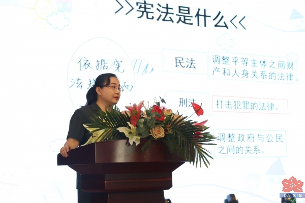 徐庭長還為師生詳細介紹了《憲法》的基本框架。她著重強調部門法制定的原則必須以憲法為基礎,不能與憲法的規定相沖突。她還宣傳了在《憲法》框架規定下公民擁有在法律面前人人平等,人身自由,言論自由,宗教自由,勞動的權利和義務,受教育的權利和義務等權利,用生動的案例、警方辟謠等相關知識生動解析,讓全體師生從新對《憲法》有了更深入的認識。徐庭長也向全體師生宣講了公民應當履行的義務,知識模塊清晰明了,在潤物細無聲中讓學生了解父母有撫養未成年子女的義務,成年子女有贍養扶助父母的義務,公民有遵守憲法和法律、尊重社會公德,維護祖國安全、榮譽和利益的,納稅的義務等等。對國家機構的建設及其職權徐庭長也做了詳細介紹。