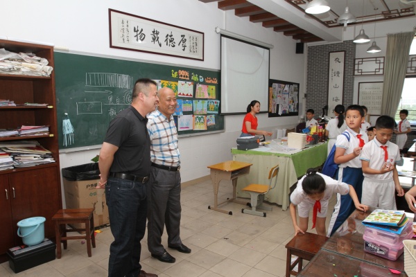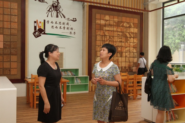 來訪的10位校長,走訪了大信學校校史展廳、少先隊部室、英語活動室、圖書館、學校架空層陶藝特色長廊、機器人訓練場、科學探究室、陶藝室、美術室、手工室、音樂室、食堂、體育館、信息技術控制中心以及紅領巾電視臺,對學校優美的校園環境和現代化的設施設備贊不絕口。