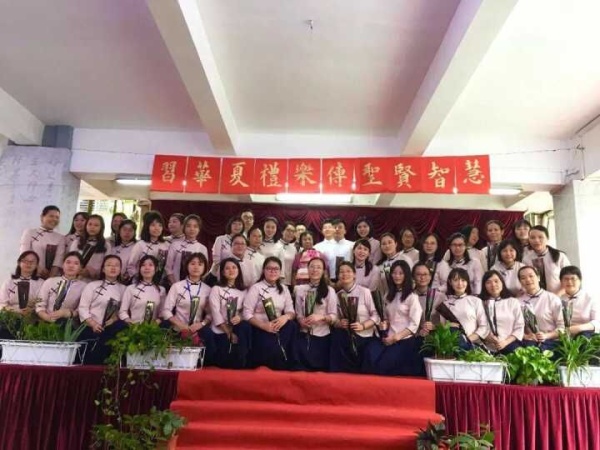 釋菜禮結束后,虞彩花校長致辭,虞校向全校教師致以節日的祝福,并向同學們說明了學校為何每年9月28日都舉行釋菜禮,因為這是一種傳承,希望通過這種傳承,每位同學都能感念老師的教育之恩,以此激勵同學們能正心修身,努力向學!做社會上有用的人。