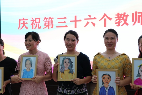 伴隨優美的旋律,學生代表上臺為每一位老師獻上一份最特別的禮物——個人畫像。據悉,該校美術科組在活動籌備階段,積極組織社團學生為全校老師繪制畫像,經過一個多星期的緊張籌備,一張張動人的倩影定格在畫面上,畫像被裝進精美的相框,在活動現場送給老師。收到這份特別禮物的老師們臉上都洋溢著幸福的笑容。