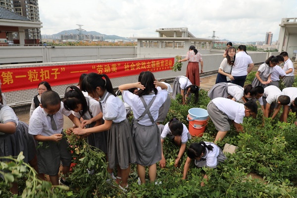 開發區香暉園小學謝雨軒老師作了“小小織巢鳥”勞動教育特色班級成果匯報。匯報包括了特色班的創建意圖、創建過程、創建成果三個環節,呈現的方式多樣化,既有學生的現場勞動展示,又有大量圖片展示,通過詳細的介紹,讓與會教師了解了勞動教育實施的途徑和方式。如何在學校開展勞動教育課,這是與會老師最迫切了解的問題。謝雨軒老師以《收花生、摘辣椒》為主題,呈現了一節勞動教育示范課。謝老師先在課堂介紹了收花生、摘辣椒的技巧,然后讓學生帶著學到的勞動方法移步學校勞動基地——“天空農場”進行勞動實踐活動。學生們分成小組,親身體驗收花生、摘辣椒的過程。學生們出力出汗,團結互助,收獲滿滿,整個勞動過程沉浸在一片歡聲笑語中。