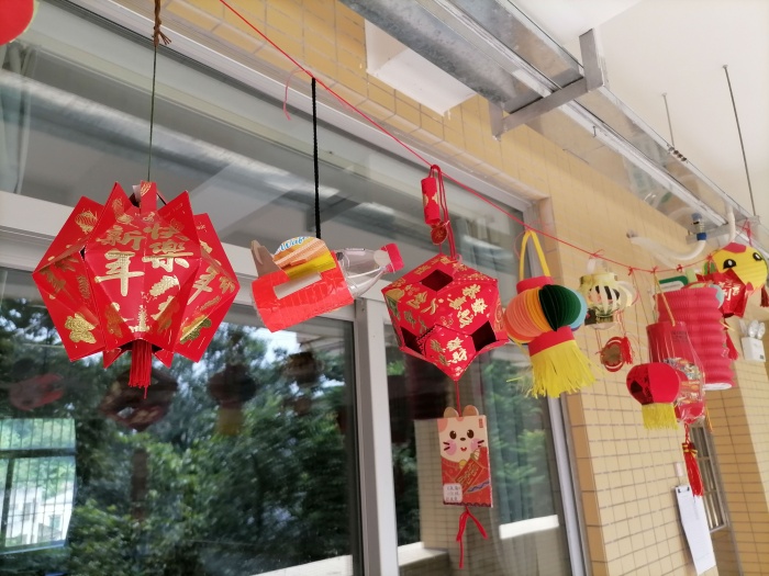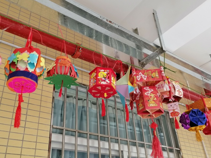 看到班級高高掛起的一串串色彩鮮艷的燈籠,就能感受到孩子們和家長齊心協(xié)力、集思廣益、用心制作。從孩子們設(shè)計的作品中可以看出,都是利用生活中一些未加工的廢舊物品如:紙盒、瓶蓋、冰棒棍、飲料罐、毛線、利是封等,通過剪、貼、涂、繞等技巧,制作成各種形狀的燈籠。