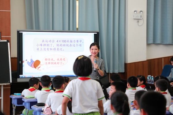 首先,開發區香暉園小學崔洋老師執教口語交際課《安慰》,崔老師創設了安慰的具體情境,引導學生設身處地了解他人的心情,體會、認同、理解他人的感受,教給學生安慰他人的“錦囊”。