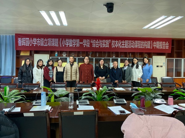 12月16日上午,香暉園小學的市級課題《小學數學第一學段“綜合與實踐”校本化主題活動的實踐研究》在四樓會議室舉行中期匯報活動。中山市教師發展中心教育發展研究部副教授趙龍山、開發區教育事務指導中心謝柏祥老師、香暉園小學教導處副主任李端生及課題組全體成員參加了活動。