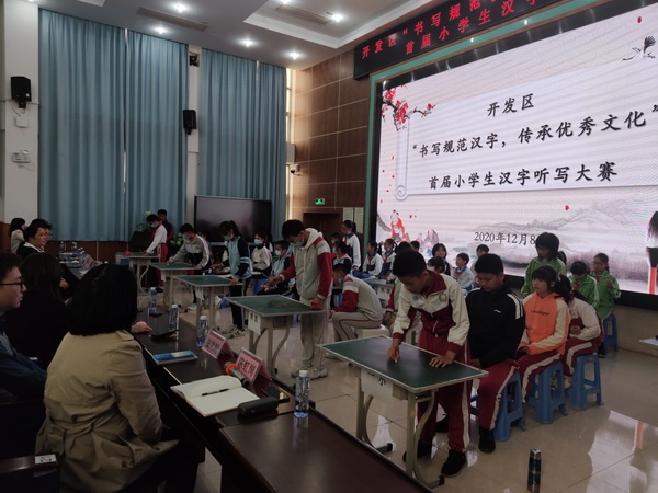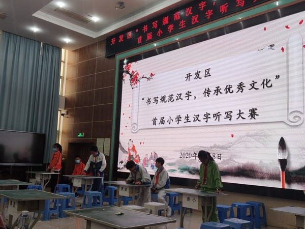 為推廣和普及國家通用語言文字,繼承和發揚中華優秀傳統文化,提高全區小學生規范漢字書寫能力,12月8日下午,開發區“書寫規范漢字,傳承優秀文化”首屆小學生漢字聽寫大賽在香暉園小學報告廳舉行,來自區內各公、民辦小學的50余名識字認字的學生“高手”參加了比賽。開發區教育事務指導中心張立超、區小學語文教研中心組組長吳書麗、香暉園小學副校長陳虹崗和開發區第一小學教導副主任李春雨擔任此次大賽的評委。