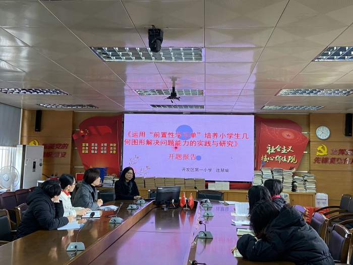 2020年12月18日上午,開發區第一小學舉行區級教育科研課題開題報告會,三個區級課題《小學語文中高段古詩群詩教學實踐研究》、《運用“前置性學習單”培養小學生幾何圖形解決問題能力的實踐與研究》、《運用繪本培養小學低年級學生閱讀能力的實踐研究》精彩亮相,開發區第一小學教務處分管領導以及課題組全體成員參加此次會議。