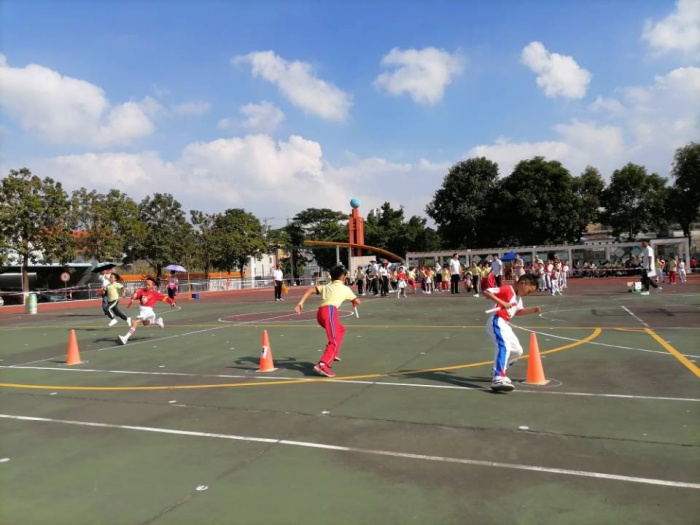 本屆運動會為期兩天,全校1400余名師生參加。運動會以文明、友誼、拼搏、向上為宗旨,比賽項目豐富多彩、趣味濃厚,既有注重發(fā)展學生個人特長的傳統(tǒng)競技項目,60米、100米、200米跑,跳繩、跳遠等,又有注重培養(yǎng)學生團隊合作意識的集體比賽趣味項目,如一、二年級全班羊角球接力、三至六年級全班接力、全校投壘球進框等。