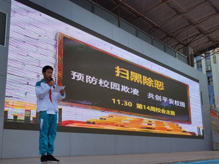 校會上,顏良江副校長從從思想認(rèn)識到位、安排部署到位、深入摸排到位、精準(zhǔn)打擊到位四個方面進(jìn)行全面講解,讓同學(xué)說深入了解了“黑惡必除,除惡務(wù)盡”的重要性,校園暴力的危害性。同時倡議全校學(xué)生:當(dāng)受到黑惡勢力欺凌時,要及時向老師、家長及警察求助。當(dāng)看見別的同學(xué)受到欺負(fù)時,也要向?qū)W校和老師報告,主動揭發(fā),不包庇不縱容。