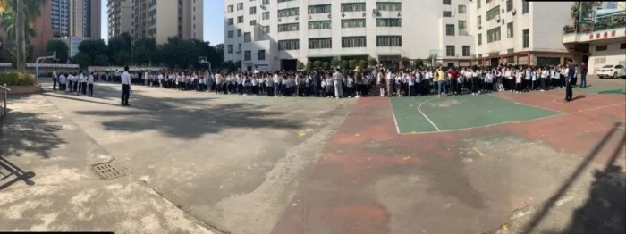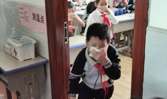 11月9日下午14點30分演練開始,隨著警報的響起,各位老師立即到達指定崗位,確保演練過程的安全,并指導學生有序快速疏散。各班班主任帶領學生根據(jù)演練方案中規(guī)定的路線,彎著腰,用濕紙巾或手等捂住口鼻,沿著學校指定樓梯口快速疏散,有序撤離到學校操場的安全地帶。