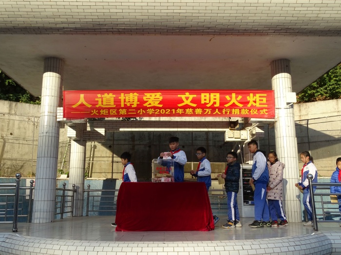 為積極響應2021年市、區慈善萬人行活動倡議,弘揚人道博愛精神,倡導中華美德,唱響新時代主旋律,營造互幫互助互愛的社會氛圍,為建設文明火炬區加快高質量崛起貢獻力量,2020年12月31日上午,開發區第二小學舉行主題為“人道博愛,文明火炬”2021年慈善萬人行義捐活動。