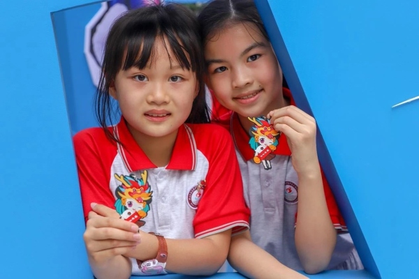 美術科組老師們在這對“明星同學”的形象設計上可是下足了功夫。他們通過了解中山火炬區龍獅傳統文化中的龍獅形象,結合博凱學子可愛活潑的形象,經過了一輪又一輪的商議、設計、改稿等,才最終確定出這對“明星同學”:頭戴色彩鮮艷、形象卡通的龍獅頭套,身穿博凱小學禮服,手拿學校“博學多才,凱風徐來”的校訓條幅。