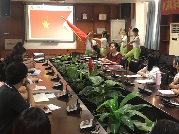 最后,大隊輔導員杜沁源老師就本學期新修改的文明班級評選細則進行了詳細解說,強調了常規細節的重要性;隨后,大隊部的隊干還為班主任老師們現場演繹了主題隊會出、退旗的流程。