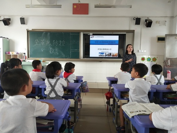 為了切實維護學生的身體健康和生命安全,嚴密防控登革熱在學校的產生與傳播,9月以來,香暉園小學進行了系列登革熱防控工作。為進一步讓同學們認識及預防登革熱,提高防控意識,9月9日下午,開發區香暉園小學開展了“登革熱防控教育”主題班會活動。