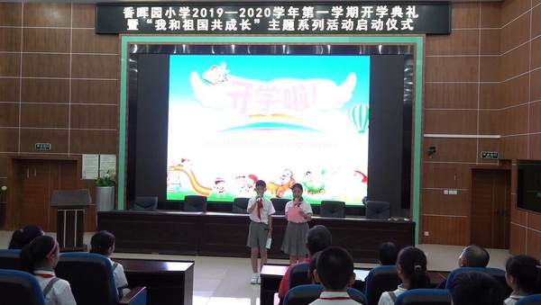開發區香暉園小學2019-2020學年第一學期開學典禮暨“我和祖國共成長”主題系列活動啟動儀式順利開展發布時間:2019-09-09 21:26 信息來源:本網站 瀏覽次數:22