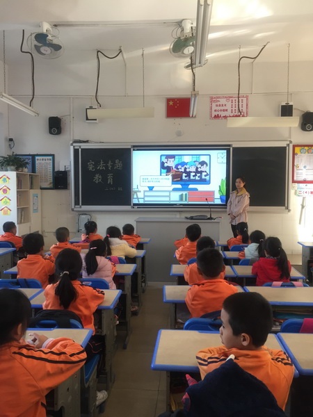 為了激發(fā)學(xué)生的學(xué)法熱情,播撒法治信仰的種子,讓學(xué)生認(rèn)識(shí)了解憲法、尊崇維護(hù)憲法。2019年12月2日,開發(fā)區(qū)中心小學(xué)組織開展了“憲法教育大課堂”主題班會(huì)活動(dòng)。各班有序組織,班主任認(rèn)真?zhèn)湔n,集合學(xué)生年齡特點(diǎn),圍繞“尊崇憲法、學(xué)習(xí)憲法、遵守憲法、維護(hù)憲法、運(yùn)用憲法”等方面組織落實(shí)班會(huì)課內(nèi)容。