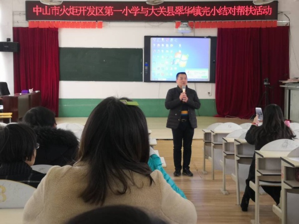 送教千里到大關,教學交流總關情。11月26日,中山火炬開發區第一小學的送教團隊一行8人,在校長劉光旗和區教育事務指導中心教研員謝柏祥老師、劉情老師的帶領下抵達云南省昭通市大關縣開展為期3天的教育教研交流活動。大關縣教育局副局長、翠華鎮中心小學袁校長和翠華鎮中心完小林校長及學校的老師們對他們的到來致以熱烈歡迎。此次活動也得到了中山市駐大關縣掛職副縣長唐國偉、大關縣扶貧辦副主任陳錦上等領導的高度重視。其中開發區第一小學的李晶、連慧瑜、劉春梅、劉曉蓮、葉潘河、蔡長青老師參與了此次交流送課交流活動。