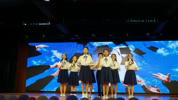 畢業(yè)典禮在六1班覃業(yè)斌同學的薩克斯演奏《送別》中拉開了序幕,接著六年級的學生代表帶來了精彩紛呈的表演:六2班馬筠嵐、張紫怡、劉鈺棟,六4班文岳、黃馨菲,六3班楊遵毅等同學帶著大家走進了光陰的故事,一起回顧了六年來的點點滴滴;六4班的同學代表用吉他彈唱的形式表演了《童年》;六3班的同學獻上了歌曲《感謝》,感恩那些一直陪伴在身邊的家人、老師、同學朋友們;在離別之際,六2班的同學還朗誦了《老師,我想對您說》,再一次感謝老師們的關愛和無私付出。