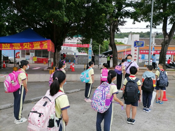 三小按照上級要求全力做好疫情防控和返校復課各項工作,精心策劃、科學安排、周密組織學生和教職員工返校。當天早上6點多,三小校門口負責檢測和維持現場秩序的老師、工作人員已經到崗做準備。7點15分至45分,學生按照學校安排,錯峰排隊進入校園。每名同學都自覺佩戴了口罩,每個人之間隔了一米以上,沒有三三兩兩聚在一起的現象。老師們則來回巡視,提醒同學們不要隨意摘口罩、相隔遠一點。