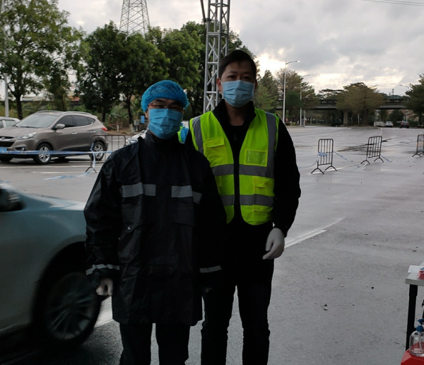 在黨員教師的帶動下,該校鄭盛柱和林錦旺兩位老師主動要求參加第二批次志愿者活動,在開發區各個重要路口配合交警部門進行車輛的分流與車內人員的體溫檢測,對重點疫區的車輛與相關戶籍人員引導信息登記。不管暴雨大風,還是深夜凌晨,他們總是提前到崗,讓上一班工作人員準時回去休息。由于防控工作繁重,連續幾個小時都顧不上喝上一口水,但他們也毫無怨言,因為他們都有共同的希望:春暖花開,疫情過去,人民幸福安康。在第二批志愿活動結束后,鄭盛柱和林錦旺老師再次申請成為第五批志愿者,每天不間斷巡查各物業小區門崗工作,制定情況匯總表,毫不松懈地筑牢物業小區“防疫墻”。