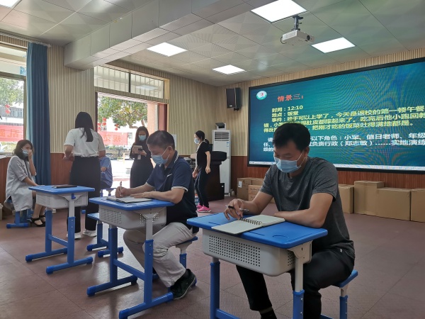 根據(jù)學(xué)校疫情防控演練方案,學(xué)校各部門對演練流程進行詳細(xì)的部署與分工。在演練前組織全員進行培訓(xùn)學(xué)習(xí),讓各教職工明確演練的角色和職責(zé)。本次演練認(rèn)真模擬學(xué)校復(fù)學(xué)后在校情景,分別為進出校門、教室上課、辦公室辦公、樓道嘔吐、上體育課和班級欺凌六個場景。除此之外,還增加了搶答環(huán)節(jié),讓全體教職工在輕松的氛圍中鞏固應(yīng)急預(yù)案的重要細(xì)節(jié)。會后,胡冬梅副校長和區(qū)教辦領(lǐng)導(dǎo)對演練過程進行小結(jié)。既肯定了實戰(zhàn)狀態(tài)下疫情工作小組和各分工小組的協(xié)調(diào)配合能力、快速反應(yīng)能力,同時對各小組演練環(huán)節(jié)中存在的不足進行了提醒,并提出相應(yīng)的改進措施。